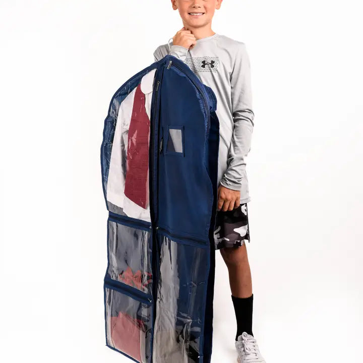 Indulge in the enchantment of performance with our 40" Costume Garment Bags in many color options. Tailored to perfection, this medium-sized bag gracefully accommodates 3-4 outfits, becoming the essential companion for young stars on their journey to the stage. Crafted with meticulous attention, it seamlessly blends functionality with a whimsical touch, elevating the experience of preparation and performance. Kendall Country garment bags feature: